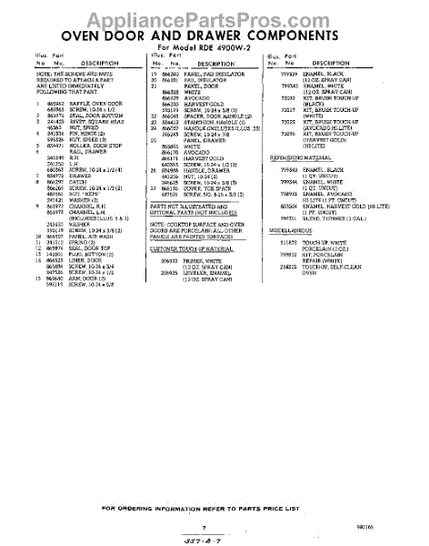 Parts for Whirlpool RDE4900W2: 07 - Section Parts