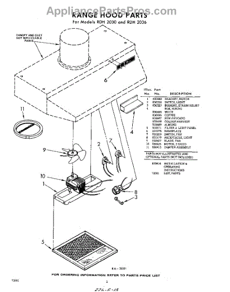 Parts for Whirlpool RDH2036: 02 - Section Parts