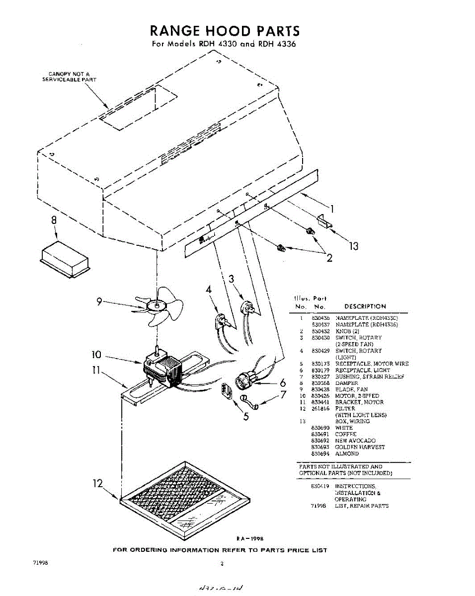Parts for Whirlpool RDH4330: 02 - Section Parts