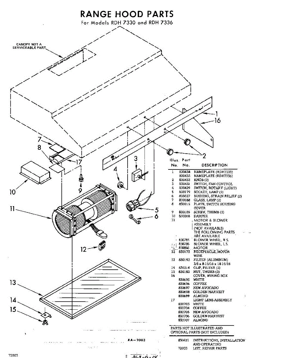 Parts for Whirlpool RDH7330: 02 - Section Parts