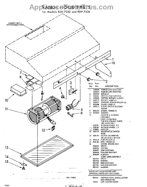 Parts for Whirlpool RDH7336: 02 - Section Parts