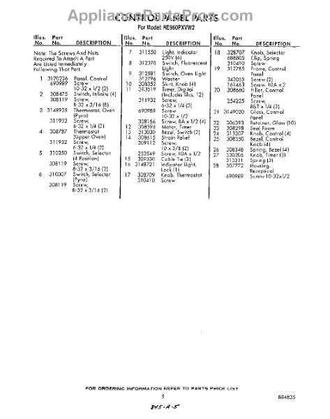Parts for RE960PXVW2