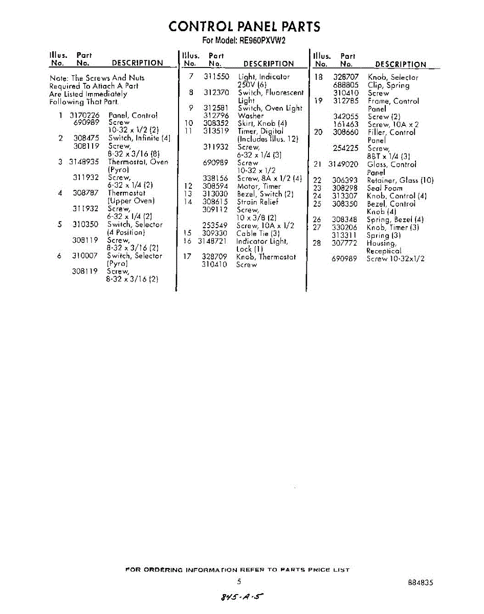 Parts for Whirlpool RE960PXVW2: 05 - Section Parts