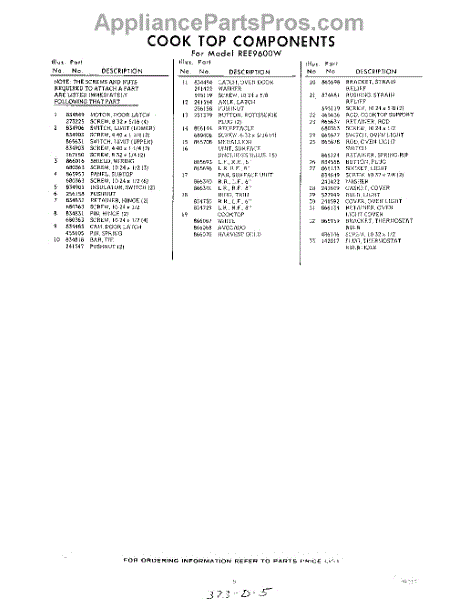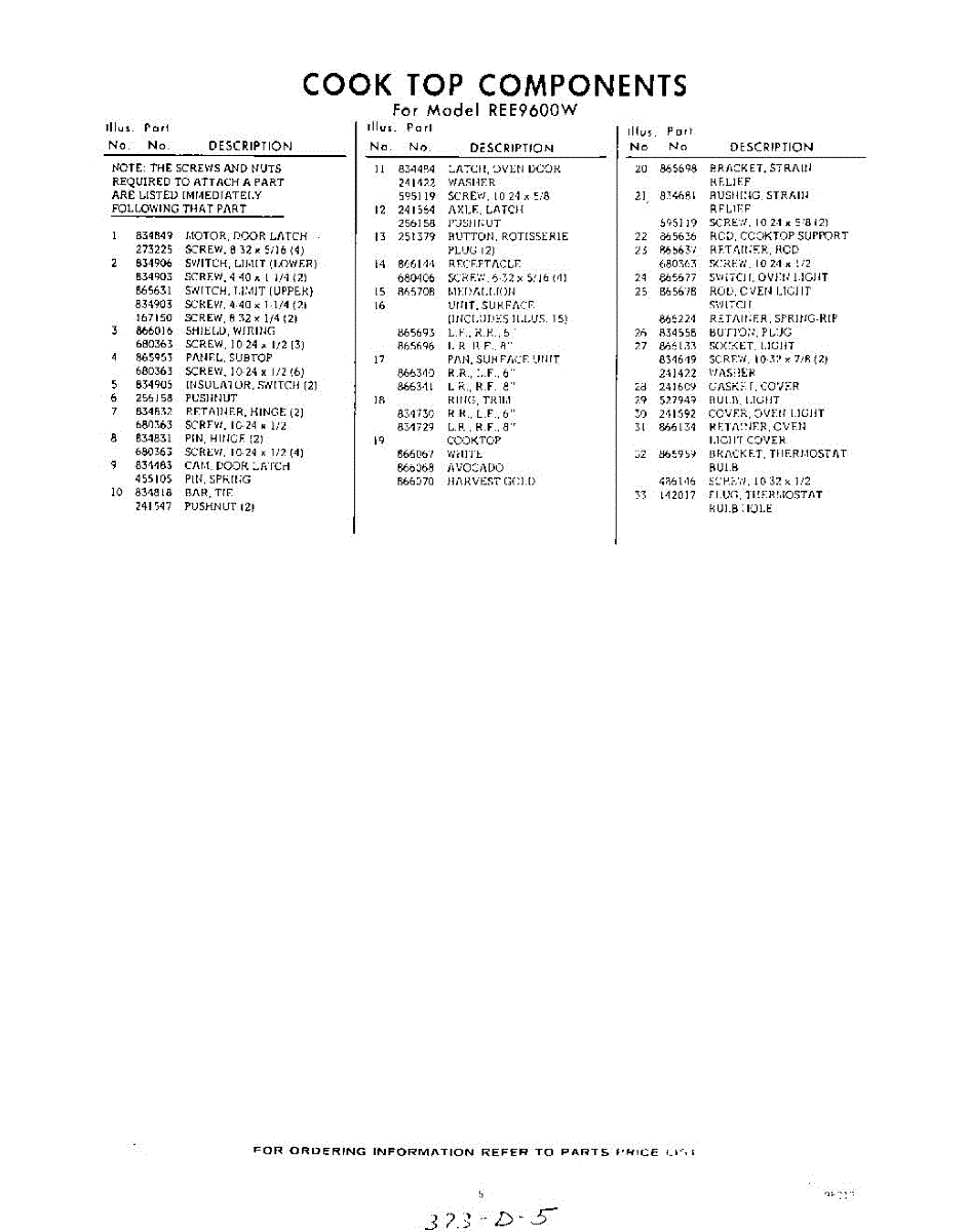Parts for Whirlpool REE9600W: 05 - Section Parts