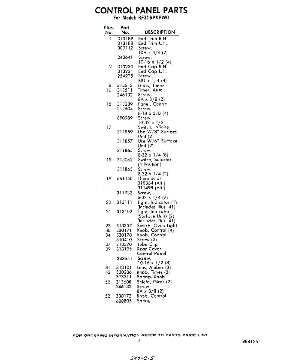 Parts for RF316PXPW0