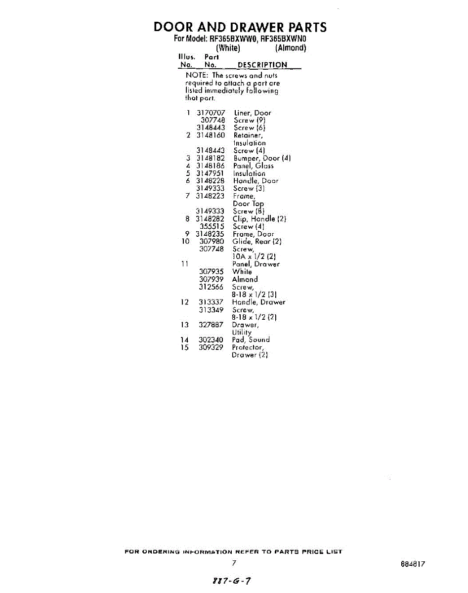 Parts for Whirlpool RF365BXWW0: 07 - Section Parts