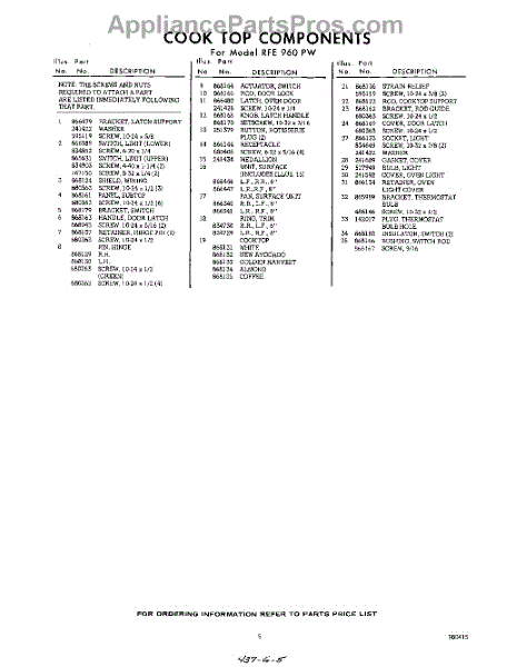 Parts for Whirlpool RFE960PW: 05 - Section Parts