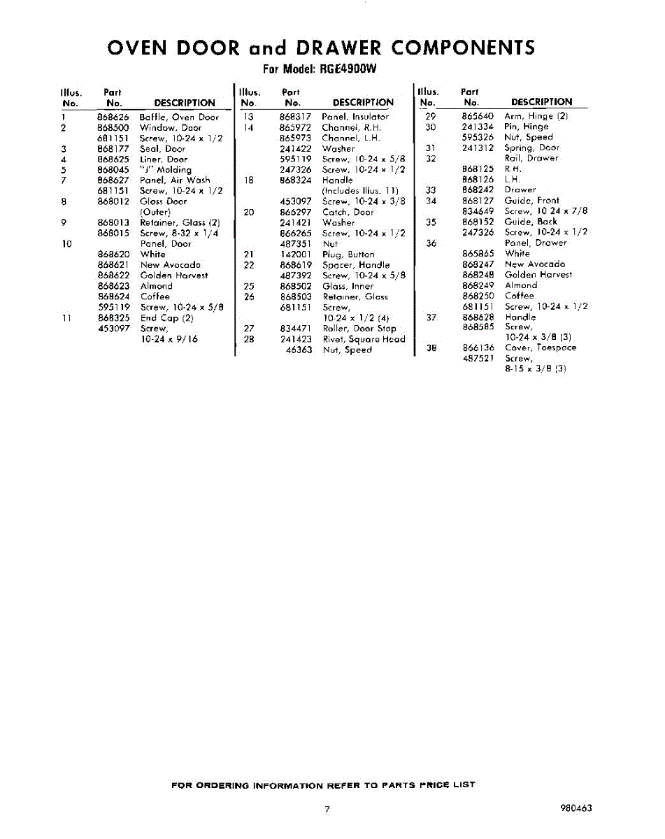 Parts for RGE4900W
