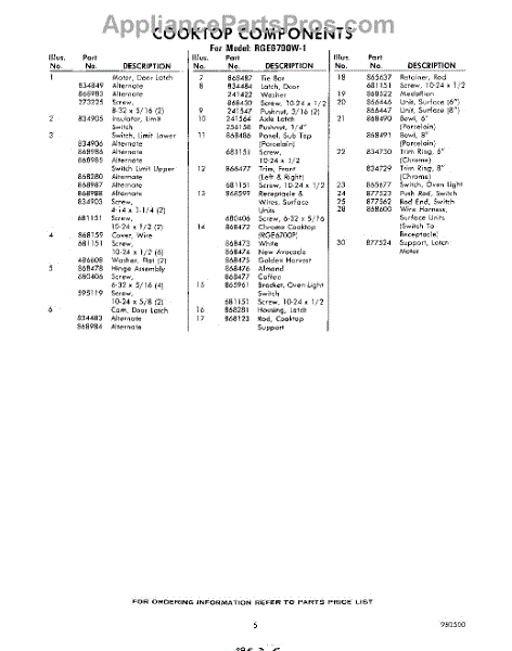 Parts for Whirlpool RGE6700W1: 05 - Section Parts