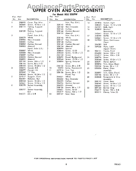 Parts for RGE950PW