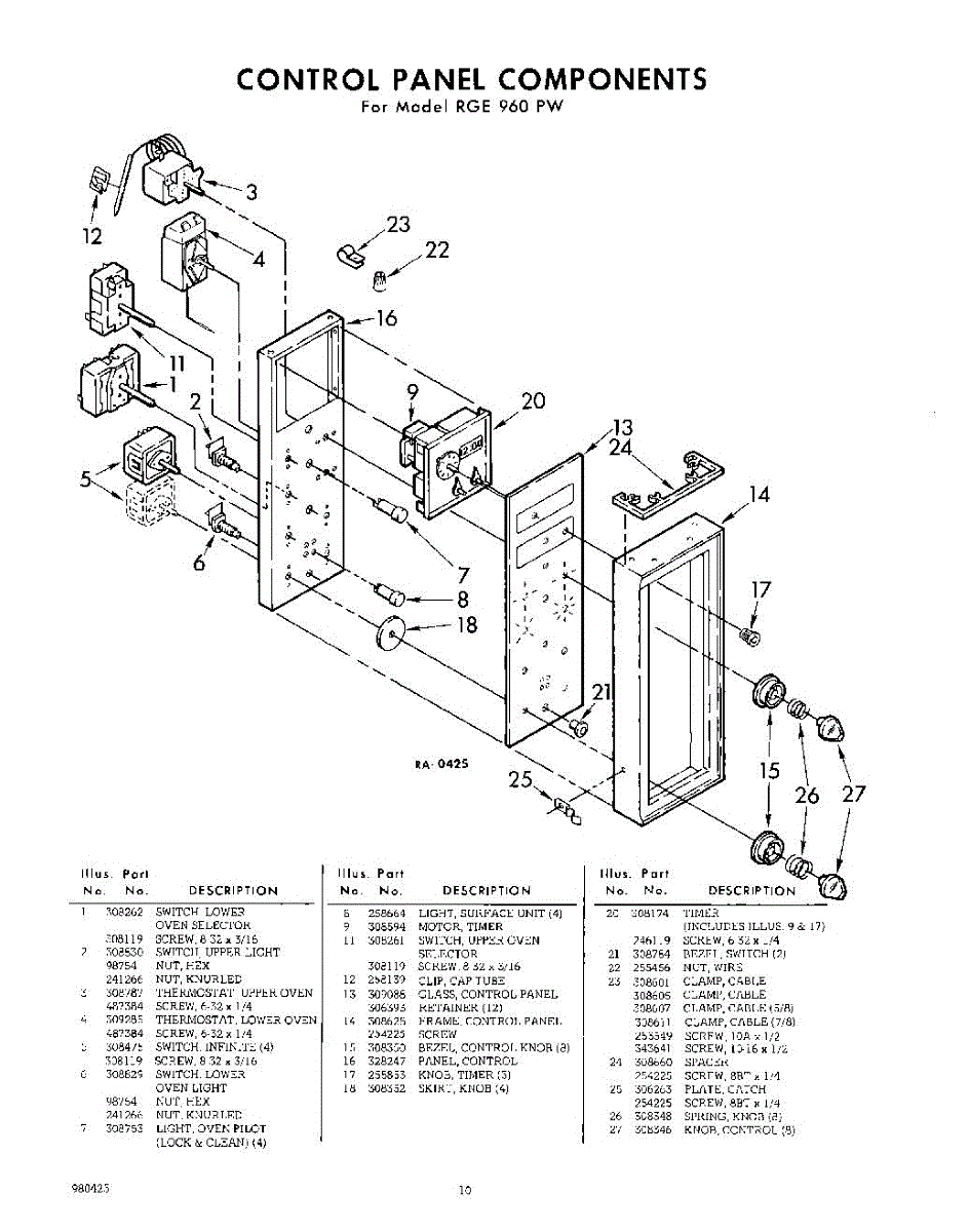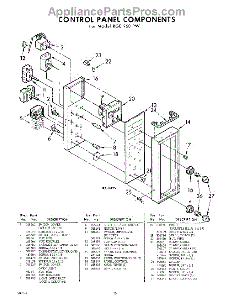 Parts for Whirlpool RGE960PW: 10 - Section Parts