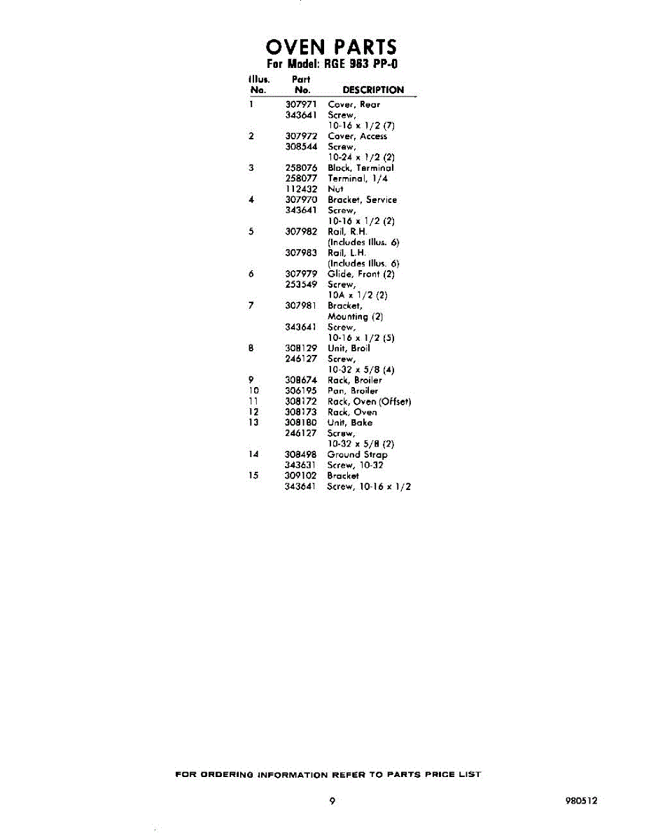 Parts for Whirlpool RGE963PP0: 09 - Section Parts