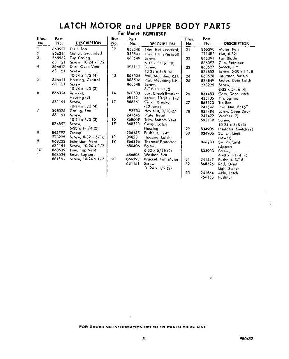 Parts for Whirlpool RGM1880P: 05 - Section Parts