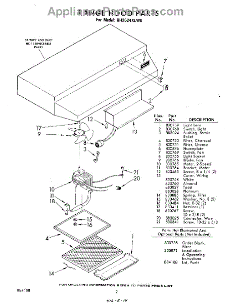 Parts for Whirlpool RH2624XLW0: 02 - Section Parts