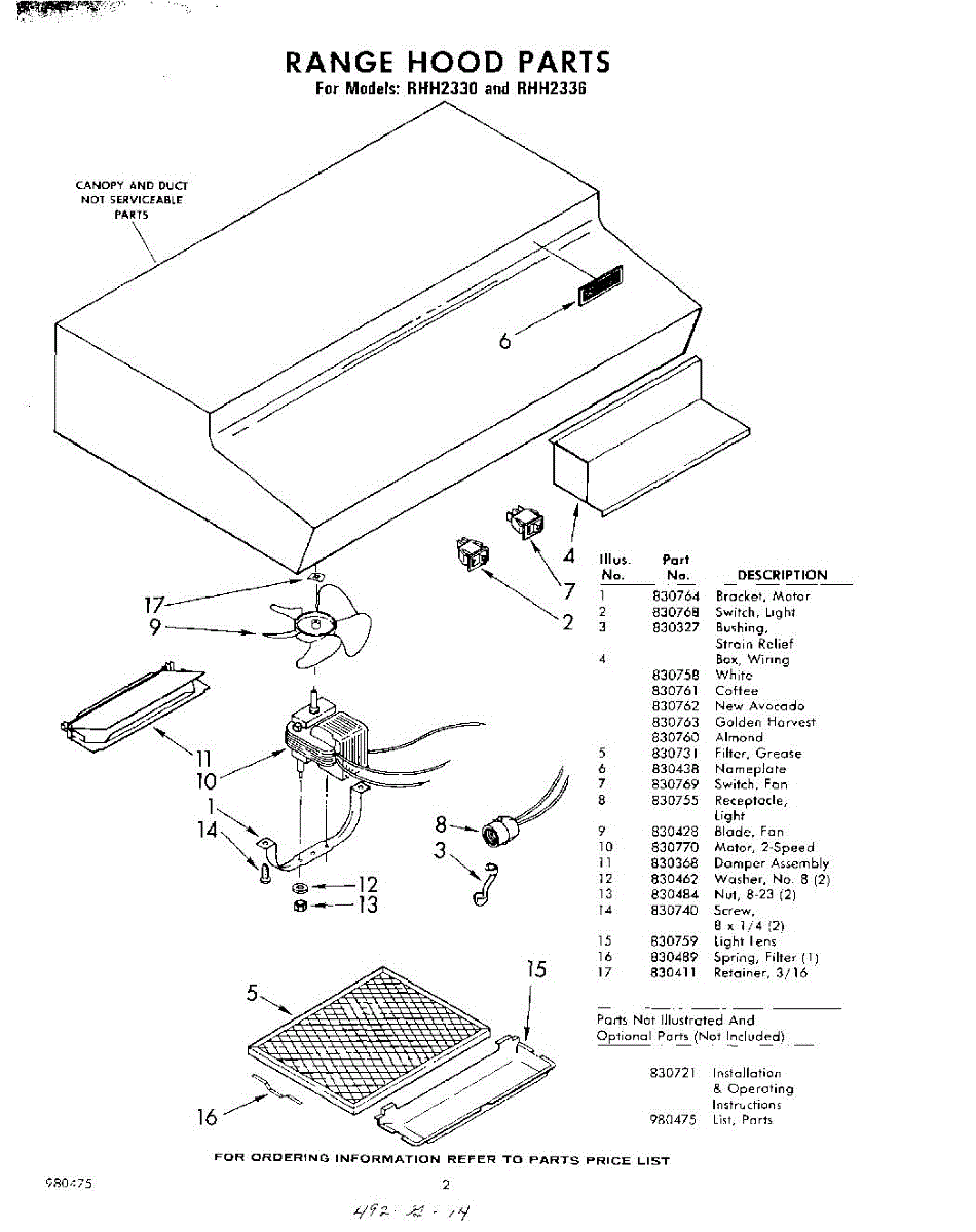 Parts for Whirlpool RHH2330: 02 - Section Parts