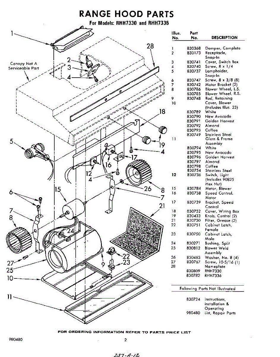 Parts for Whirlpool RHH7336: 02 - Section Parts
