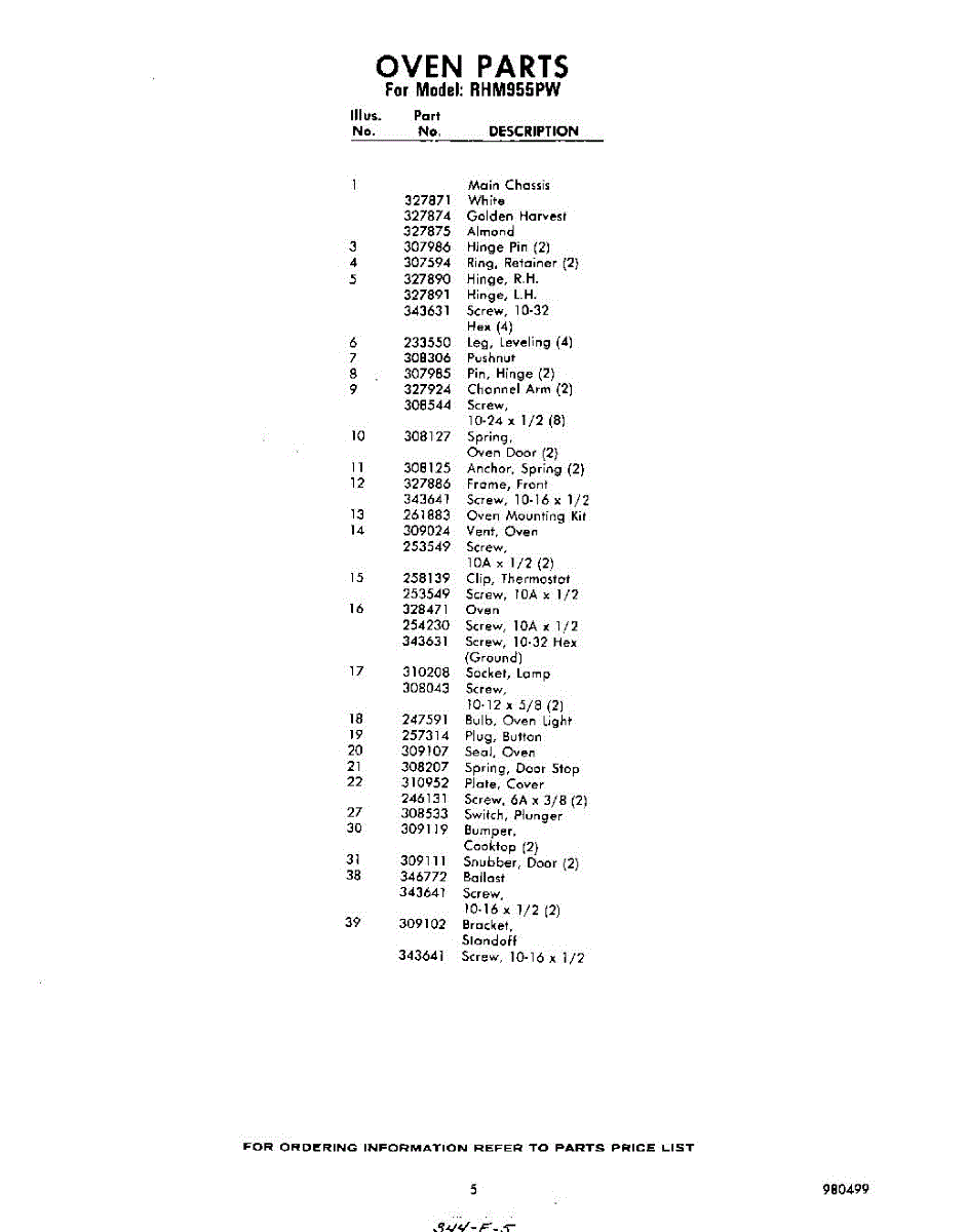 Parts for RHM955PW
