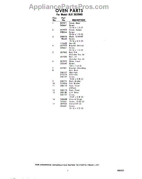 Parts for Whirlpool RJE3020W0: 07 - Section Parts