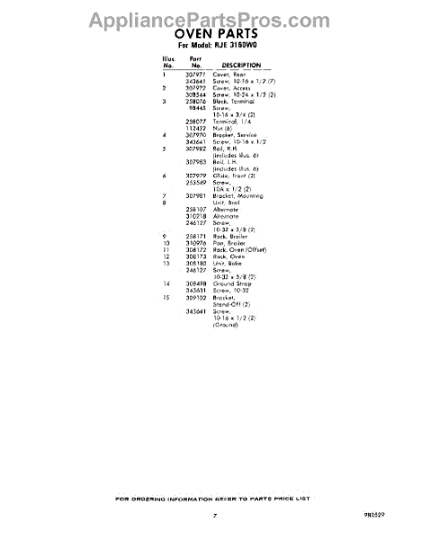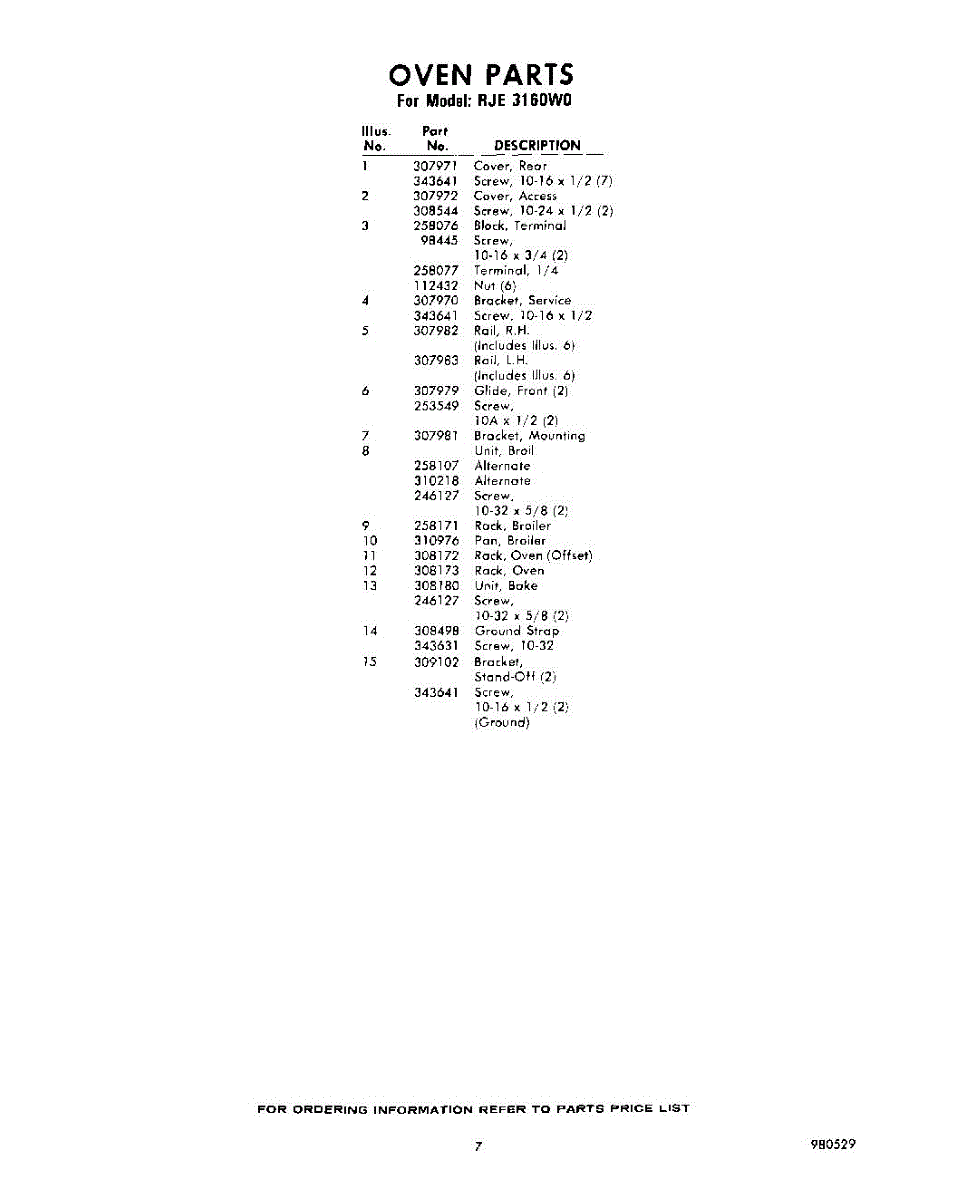 Parts for Whirlpool RJE3160W0: 07 - Section Parts