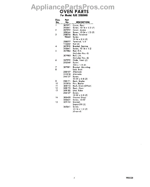 Parts for Whirlpool RJE3300W0: 07 - Section Parts