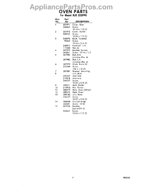 Parts for Whirlpool RJE333PP0: 07 - Section Parts