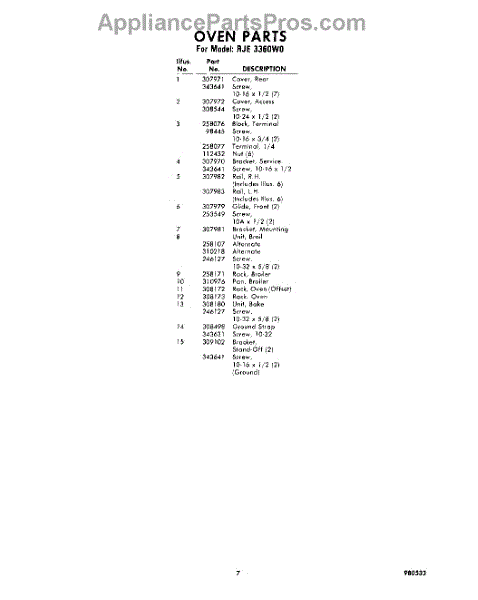 Parts for Whirlpool RJE3360W0: 07 - Section Parts