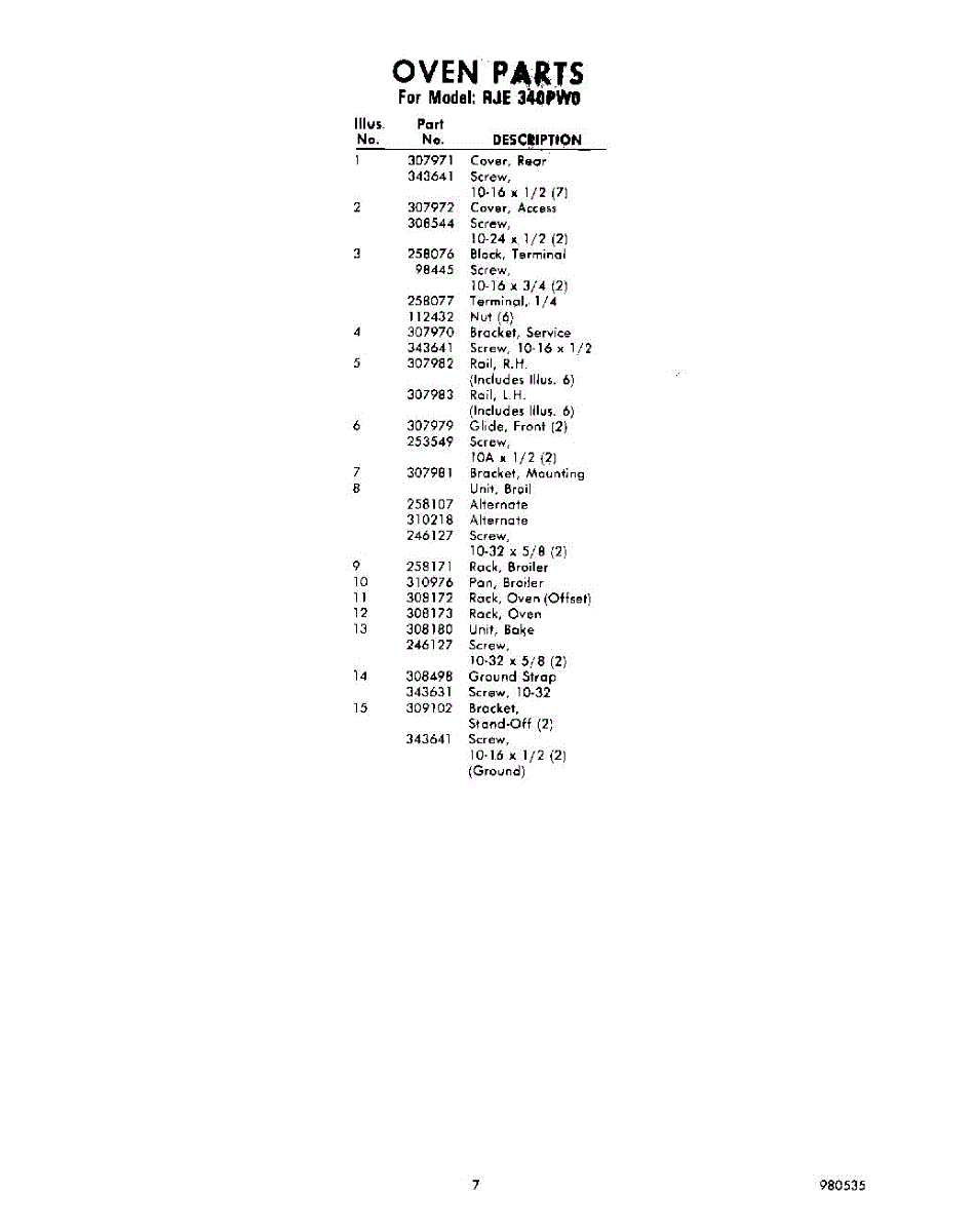 Parts for Whirlpool RJE340PW0: 07 - Section Parts
