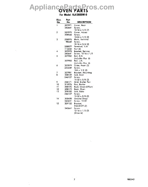 Parts for Whirlpool RJE3600W0: 07 - Section Parts