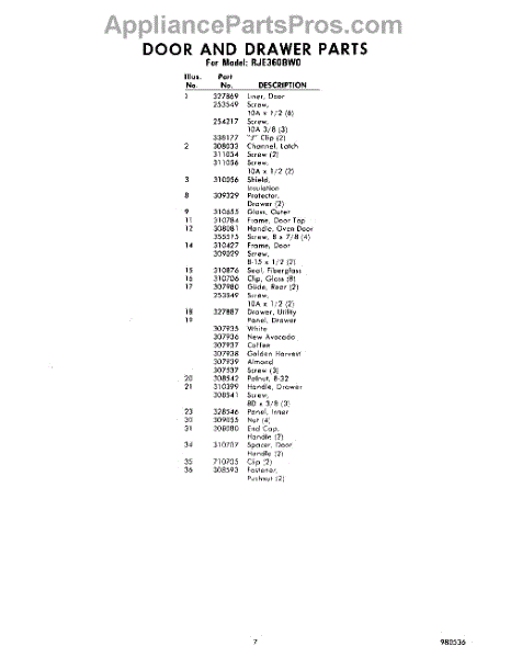 Parts for Whirlpool RJE360BW0: 07 - Section Parts