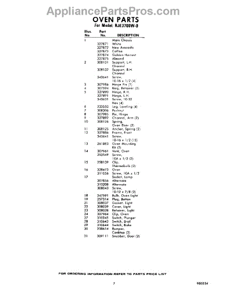 Parts for Whirlpool RJE3700W0: 07 - Section Parts