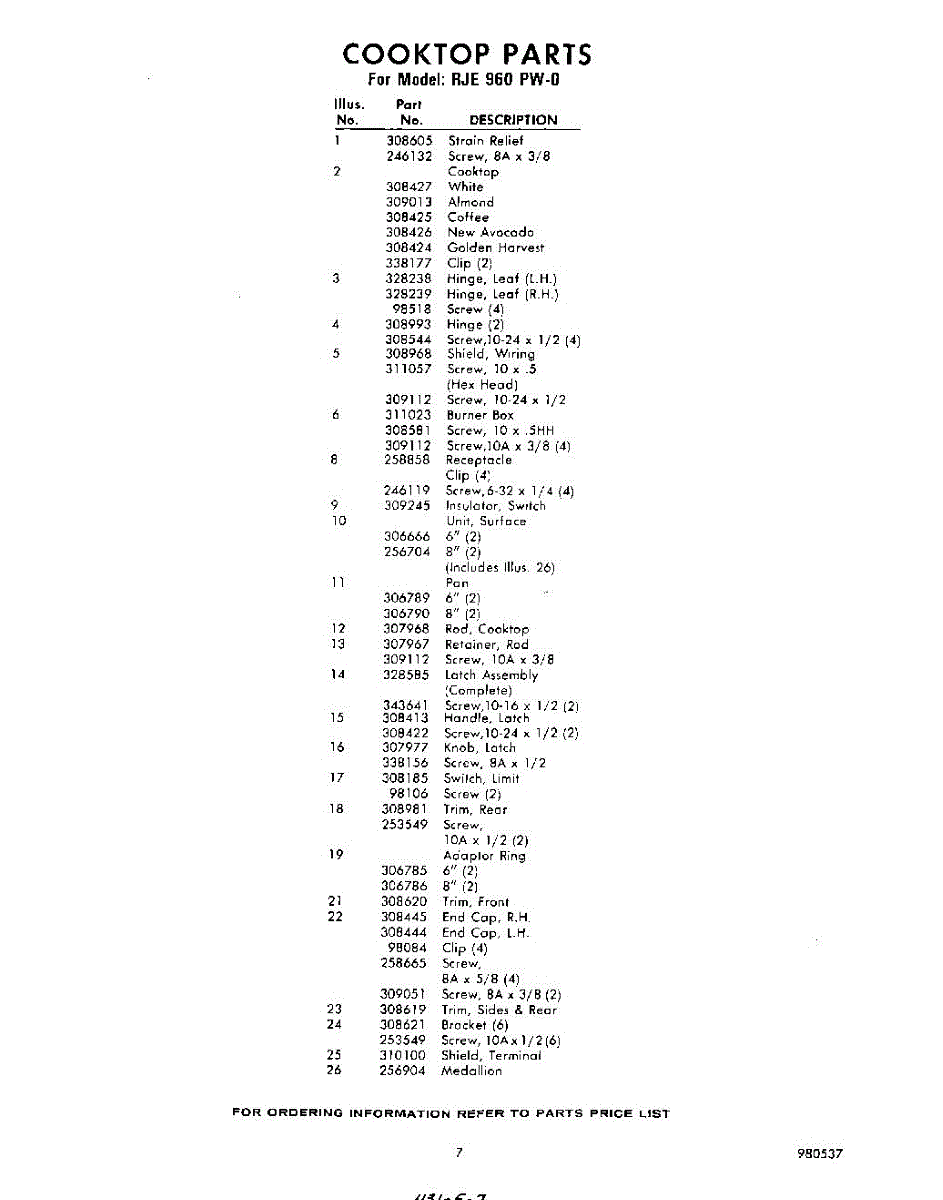 Parts for RJE960PW0