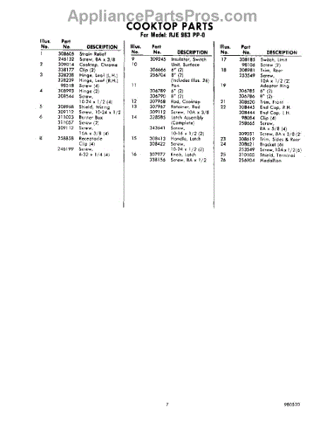 Parts for Whirlpool RJE963PP0: 07 - Section Parts