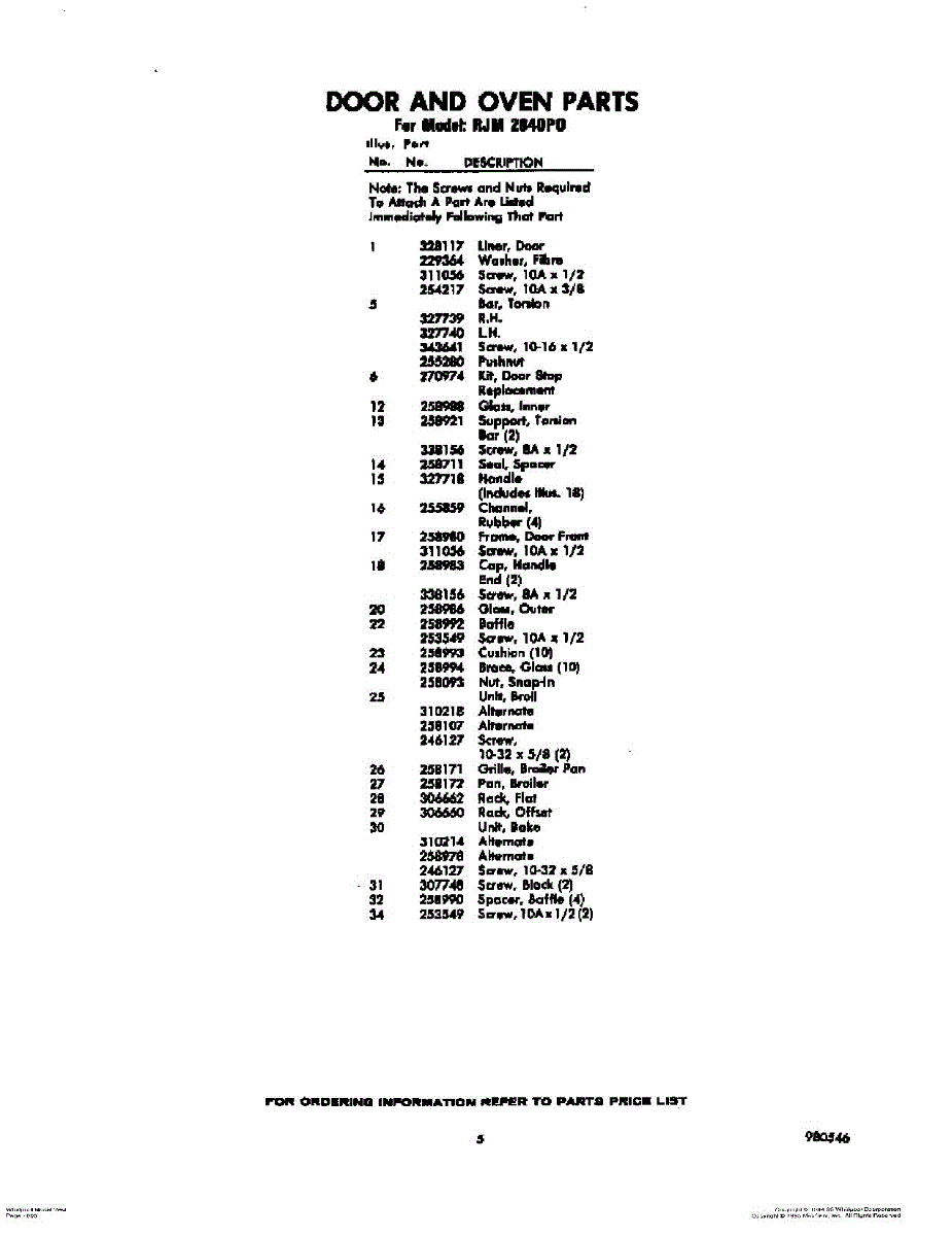 Parts for Whirlpool RJM2840P0: 05 - Section Parts