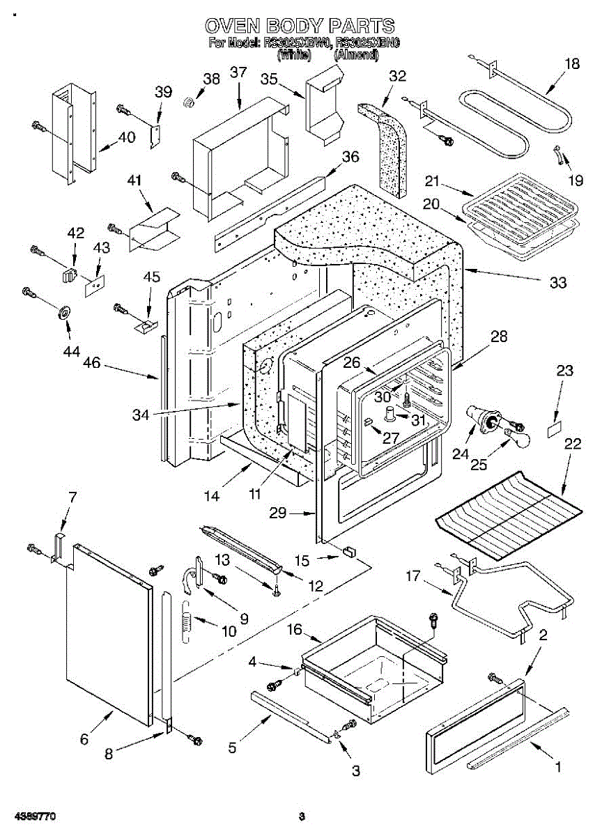 Parts for Whirlpool RS3025XBN0: 02 - Section Parts