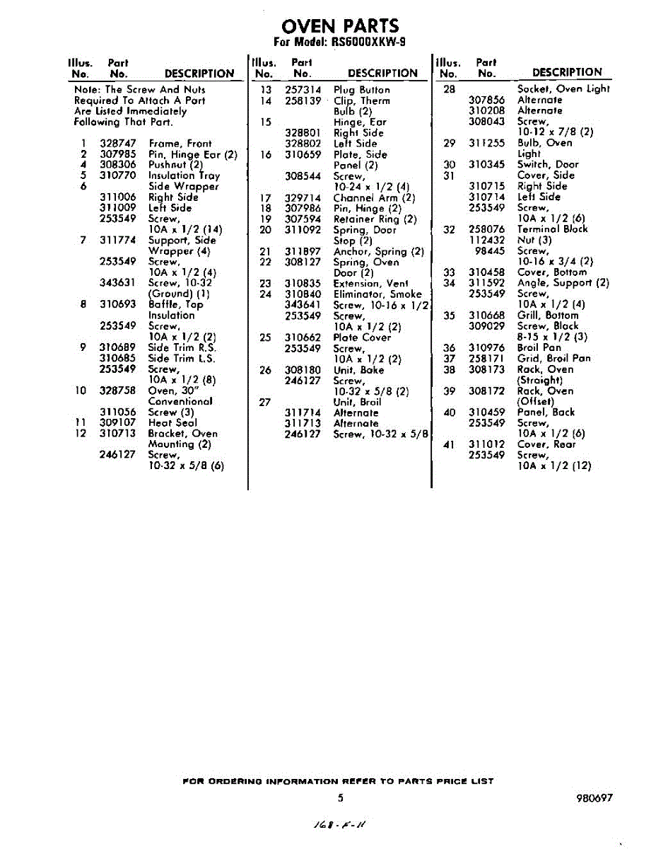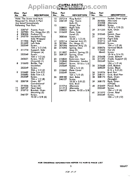 Parts for Whirlpool RS6000XKW9: 05 - Section Parts