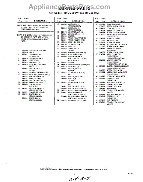 Parts for RVU2660W