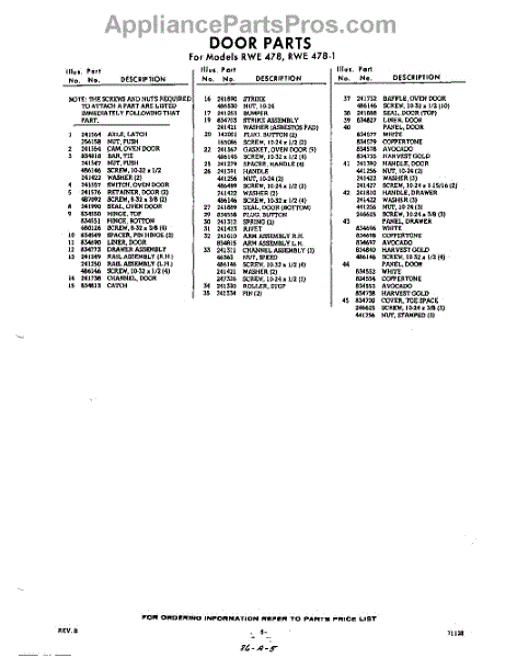 Parts for Whirlpool RWE4781: 05 - Section Parts