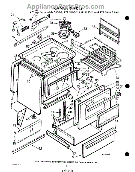 Parts for Whirlpool RYE36502: 02 - Section Parts