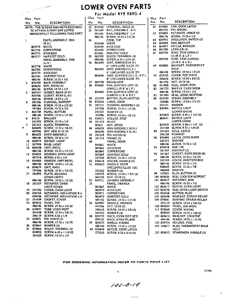 Parts for Whirlpool RYE98904: 05 - Section Parts