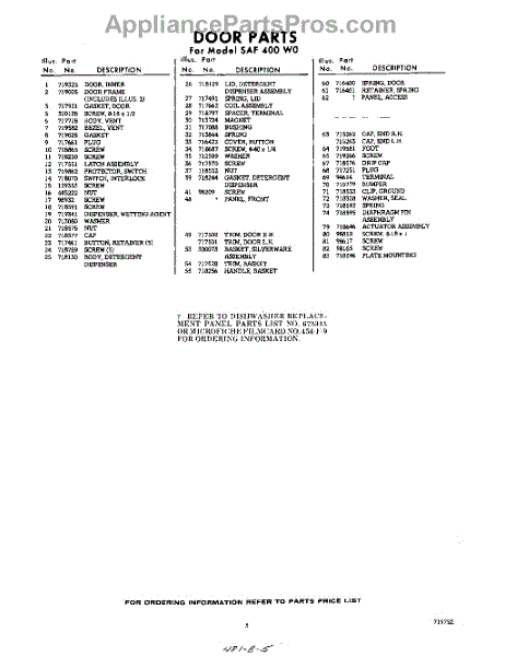 Parts for Whirlpool SAF400W0: 05 - Section Parts