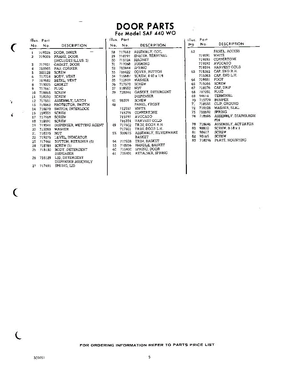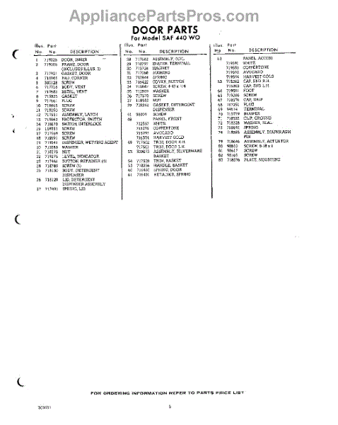 Parts for Whirlpool SAF440W0: 05 - Section Parts