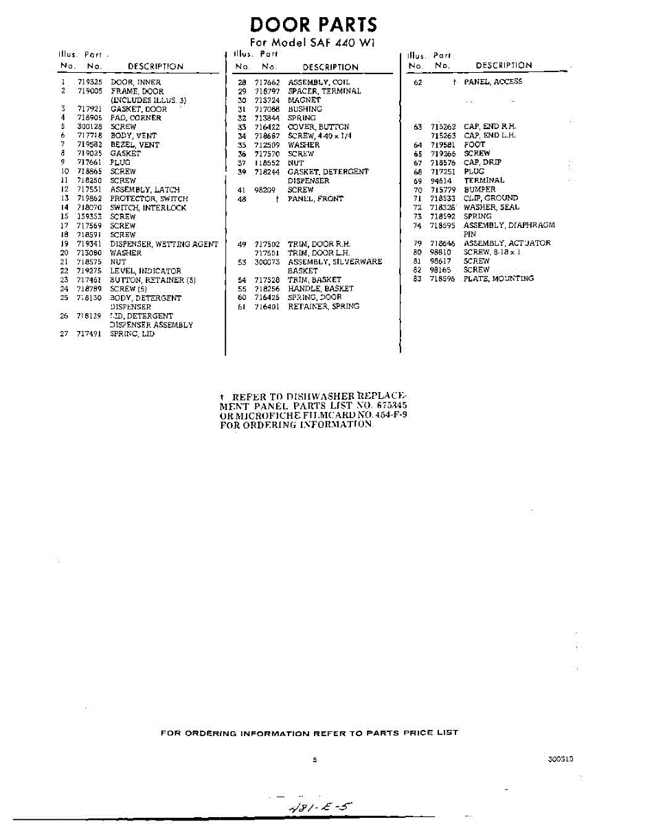 Parts for SAF440W1