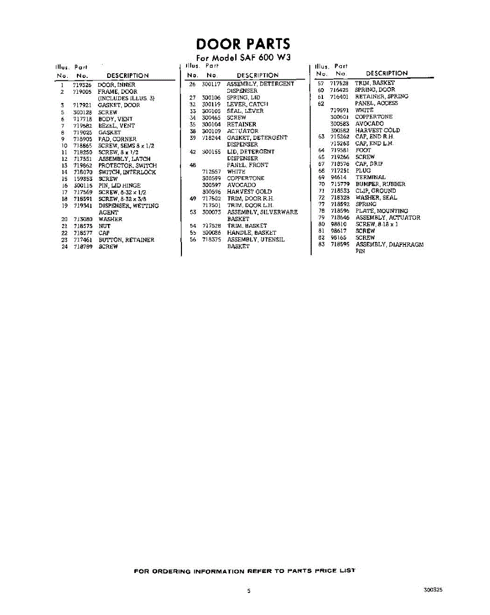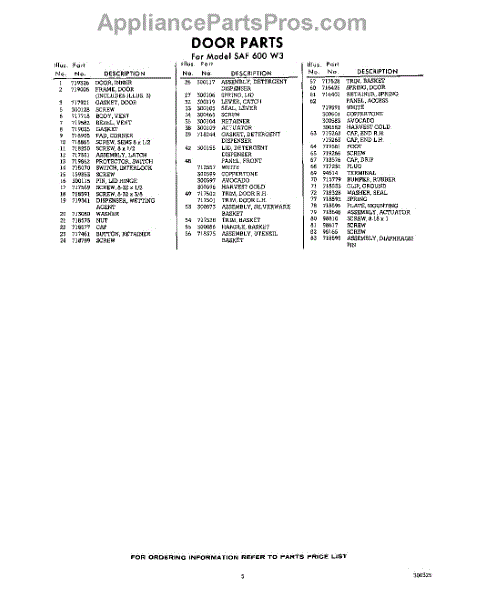 Parts for Whirlpool SAF600W3: 05 - Section Parts