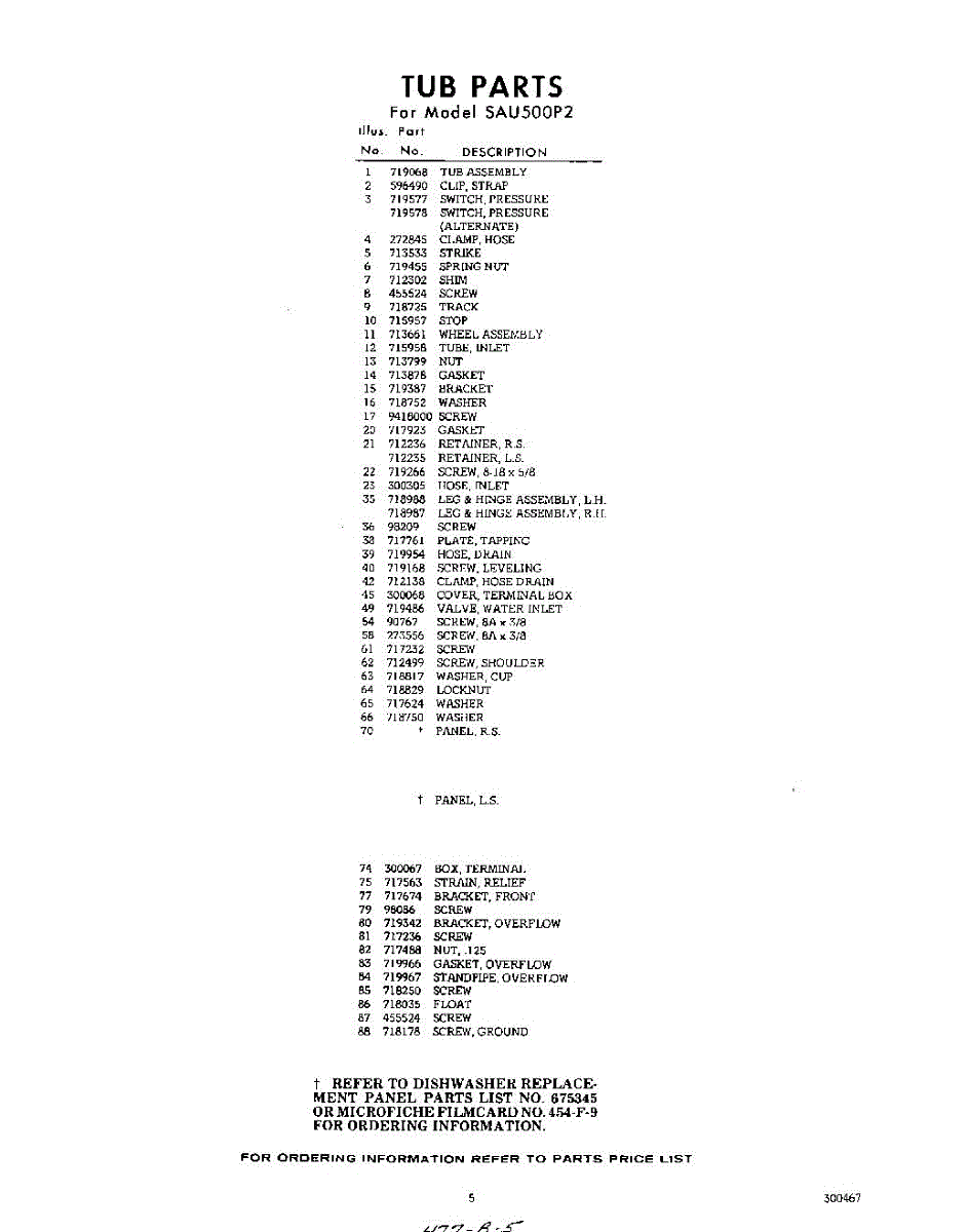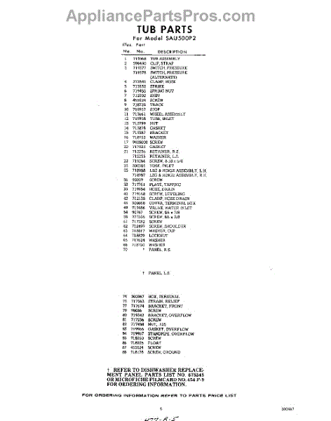 Parts for Whirlpool SAU500P2: 05 - Section Parts
