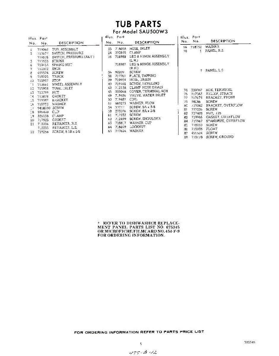 Parts for Whirlpool SAU500W3: 05 - Section Parts