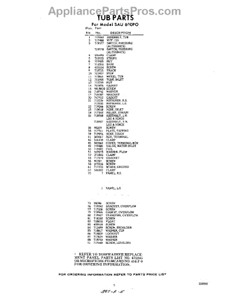 Parts for Whirlpool SAU600P0: 05 - Section Parts