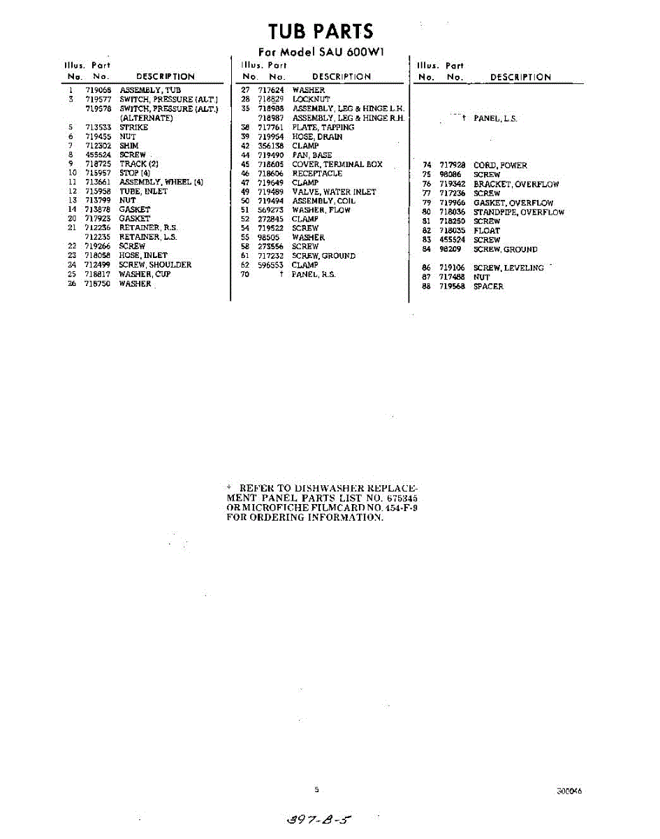 Parts for Whirlpool SAU600W1: 05 - Section Parts