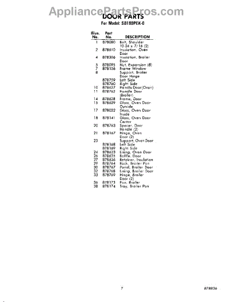 Parts for Whirlpool SB100PEK0: 07 - Section Parts
