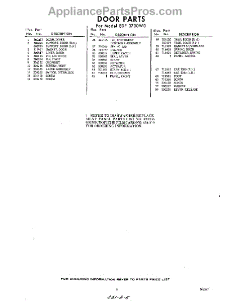 Parts for Whirlpool SDF3700W0: 05 - Section Parts