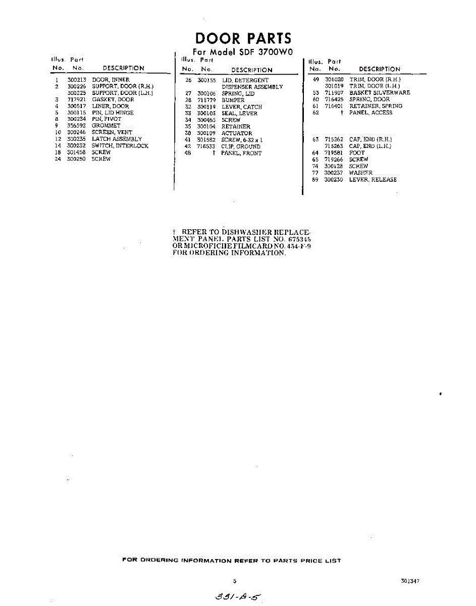 Parts for SDF3700W0